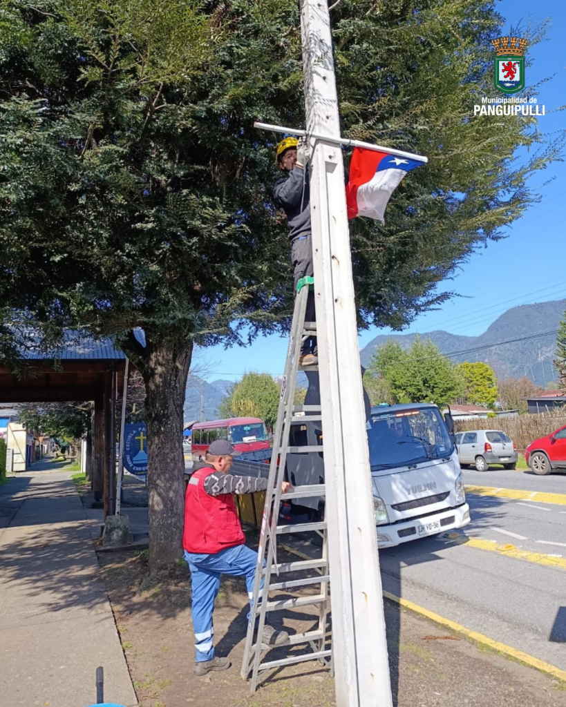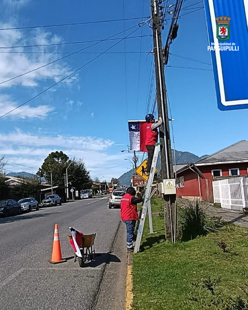La Municipalidad de Panguipulli, a través de su Departamento de Aseo y Ornato, ya se prepara para recibir con alegría y orgullo las celebraciones de Fiestas Patrias. Con la colocación de banderas patrióticas y banderas de Panguipulli, la ciudad y sus localidades lucirán un ambiente festivo que invita a disfrutar en comunidad.