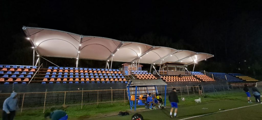 ¡Buenas noticias para el deporte local! Ya se puede apreciar cómo va tomando forma la techumbre del Estadio Municipal de Panguipulli, una obra que además contará con iluminación en todo el sector de la estructura.