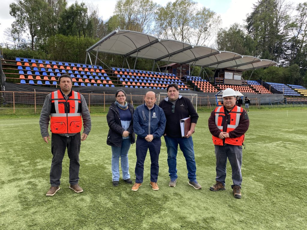 Un día histórico vivió la comuna de Panguipulli con la recepción provisoria de las obras de la cubierta del Estadio Municipal. El alcalde Rodrigo Valdivia Orias, acompañado de Carlos Moreno (Director de Obras Municipales), el concejal Carlos Durán, presidente de la comisión de deportes, y funcionarios de la Corporación Municipal de Deportes (CMD), realizaron la revisión final de esta primera etapa.