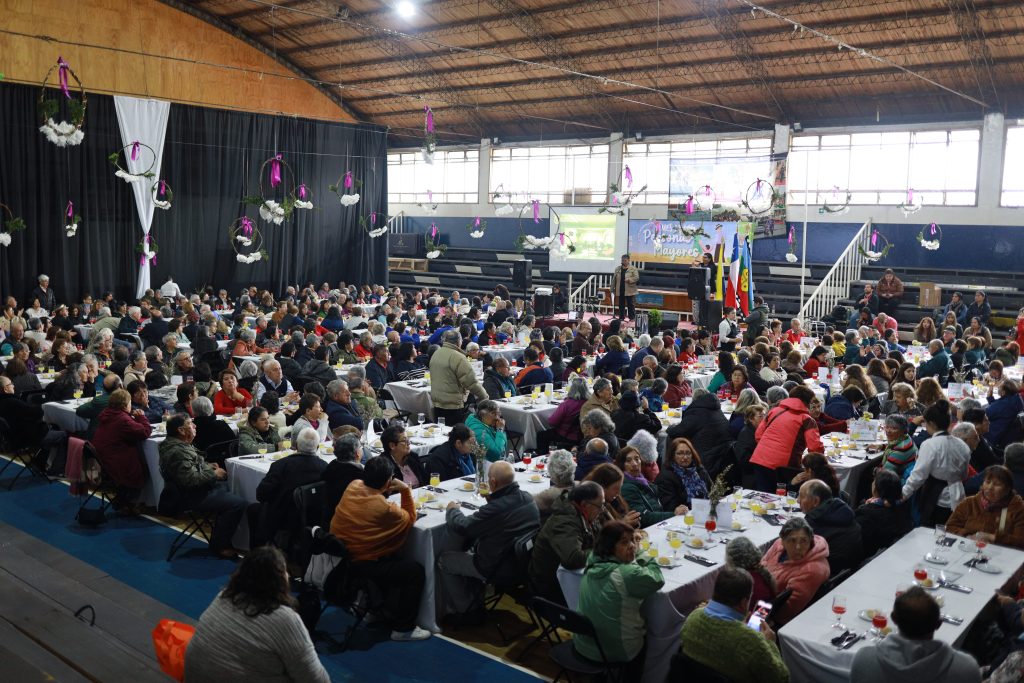 Con gran alegría se celebró hoy el tradicional Almuerzo del Adulto Mayor en el Gimnasio Municipal de Panguipulli, actividad que reunió a más de 400 personas mayores provenientes de distintas localidades de la comuna, en una jornada llena de música, reconocimiento y emociones.