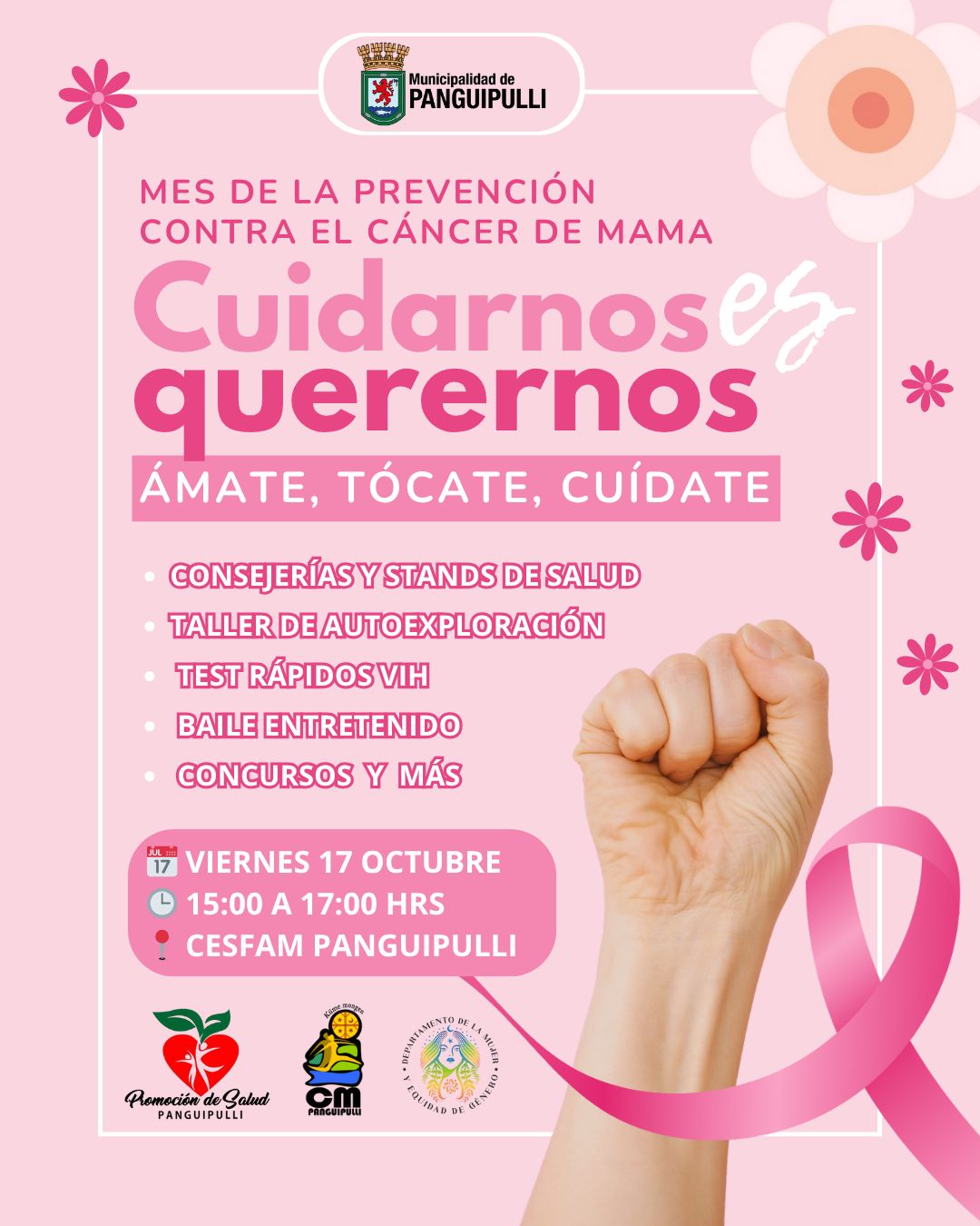 Octubre es el «Mes de Sensibilización sobre el Cáncer de Mama», y desde el CESFAM Panguipulli, en conjunto con el Departamento de la Mujer y Equidad de Género del municipio, te invitan a participar en una jornada especial para reflexionar, aprender y compartir sobre esta importante temática.
