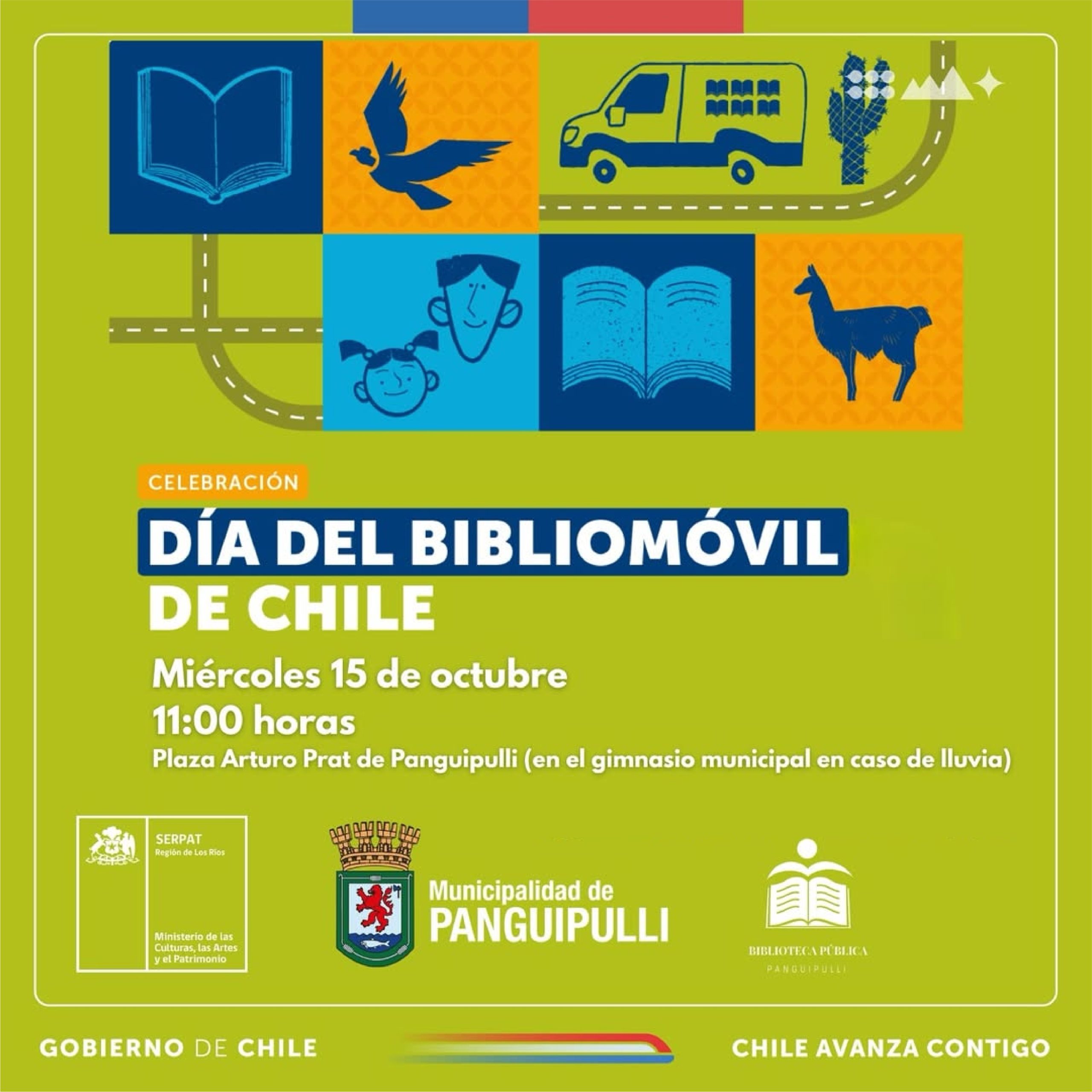 ¡Panguipulli celebra el Día del Bibliomóvil con una jornada llena de cultura, arte y comunidad! Este miércoles 15 de octubre desde las 11:00 horas, te esperamos en la Plaza Arturo Prat —o en el Gimnasio Municipal en caso de lluvia— para compartir un día dedicado a la lectura, la creatividad y el encuentro entre generaciones.