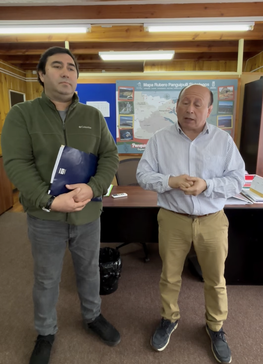 El alcalde Rodrigo Valdivia Orias, junto a Marcelo Torres, encargado del Departamento de Caminos, entregaron información importante sobre el plan de mantenimiento de caminos que ejecuta la Municipalidad de Panguipulli en distintos sectores de la comuna.
