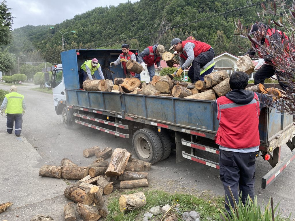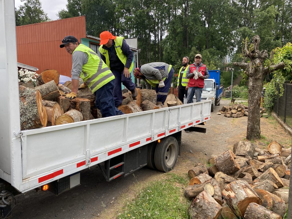 Más de 20 familias fueron beneficiadas con esta leña destinada especialmente a los adultos mayores de la localidad. El aporte fue posible gracias a la constructora ARCHA, que entregó a la municipalidad la madera proveniente de una obra en Enco–Riñihue. Posteriormente, el municipio la aserró, dimensionó y preparó con sus propios equipos para distribuirla entre quienes más lo necesitan.