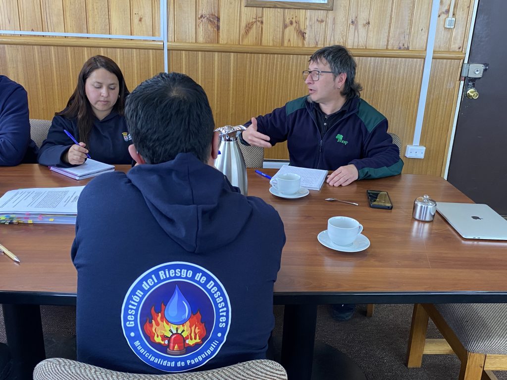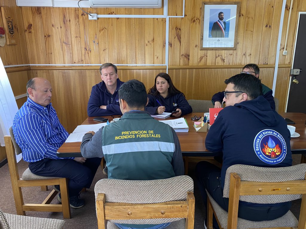 El alcalde Rodrigo Valdivia Orias se reunió con el director regional de SENAPRED, Daniel Epprecht; el jefe de oficina CONAF Panguipulli, Jorge Quezada; y el equipo municipal del Departamento de Gestión de Riesgos y Desastres, liderado por Brenda Olate, con el fin de revisar puntos críticos del territorio y definir estrategias preventivas.