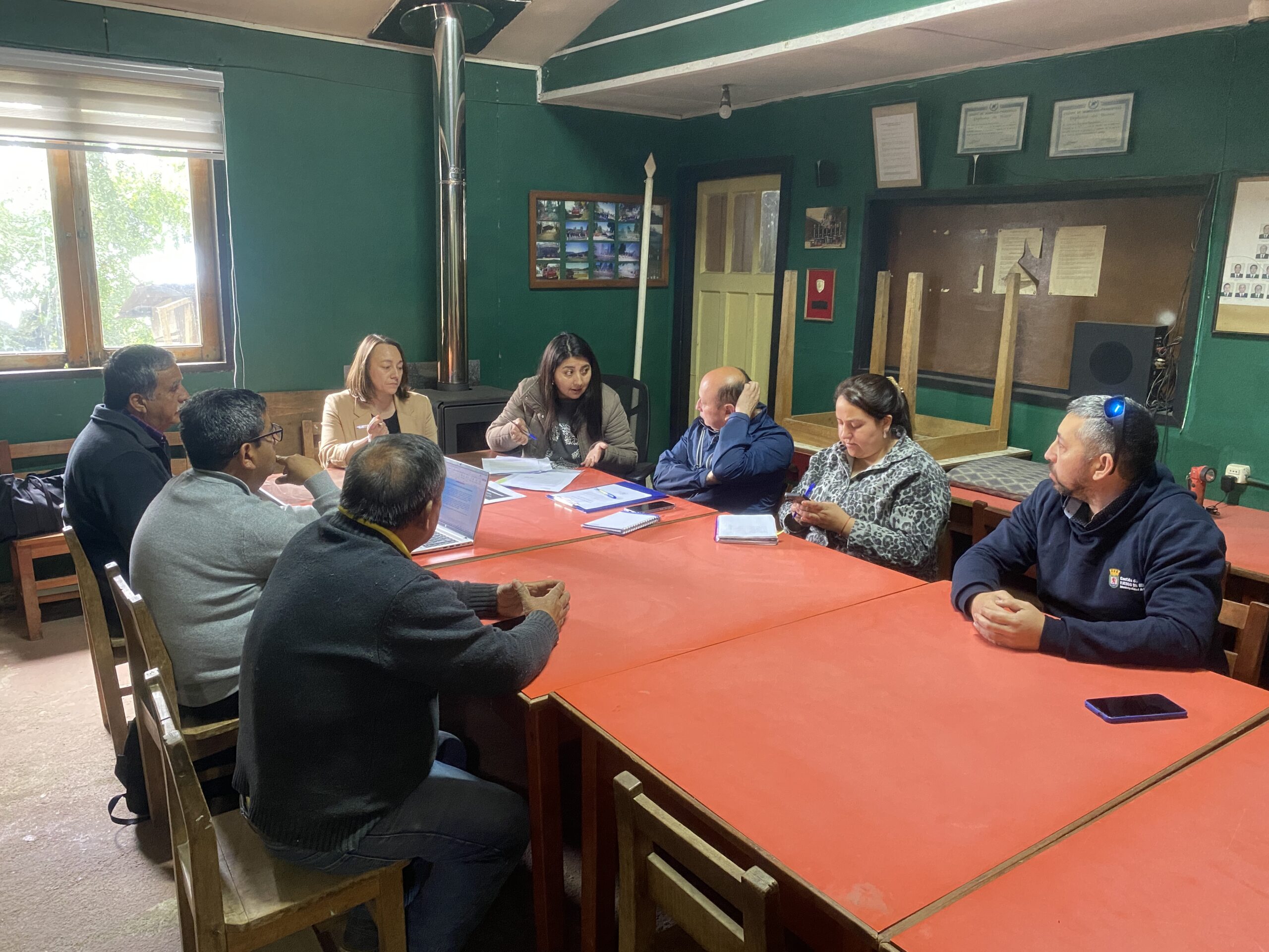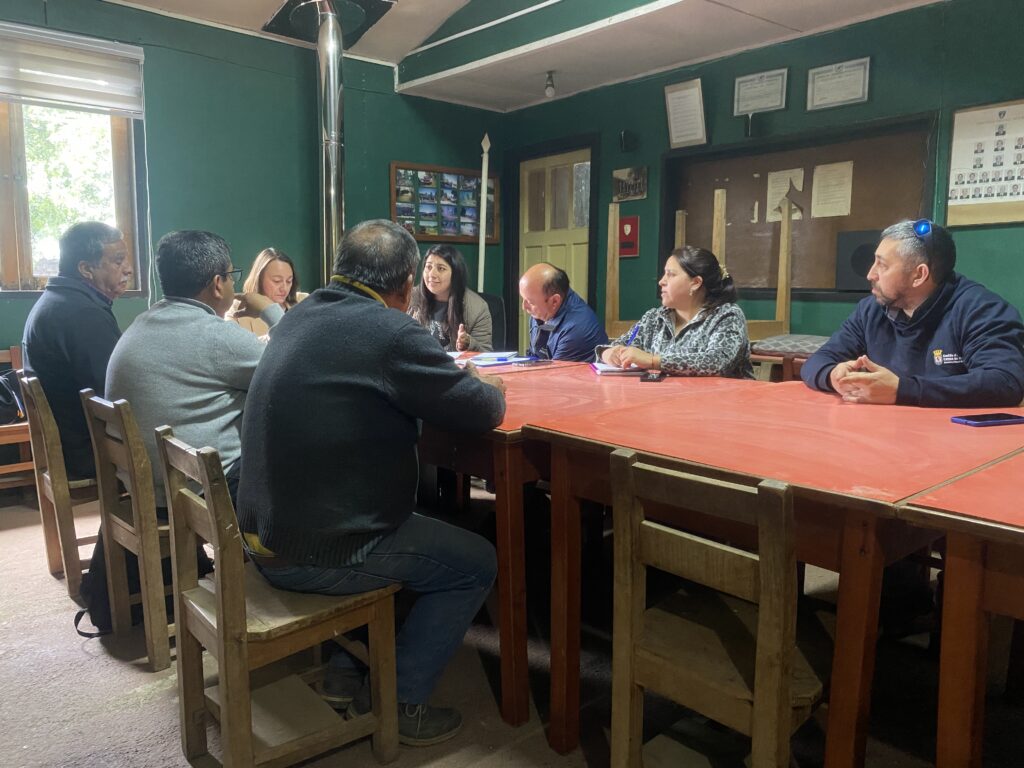 El alcalde Rodrigo Valdivia Orias se reunió con dirigentes de la Junta de Vecinos y del APR de Calafquén, junto a la subdirectora de Servicios Sanitarios Rurales de la DOH, Lorena Kiessling, y Brenda Olate, encargada del Departamento de Gestión de Riesgos y Desastres del municipio, además de dirigentes y funcionarios municipales, para abordar los desafíos del proyecto de Agua Potable Rural del sector.