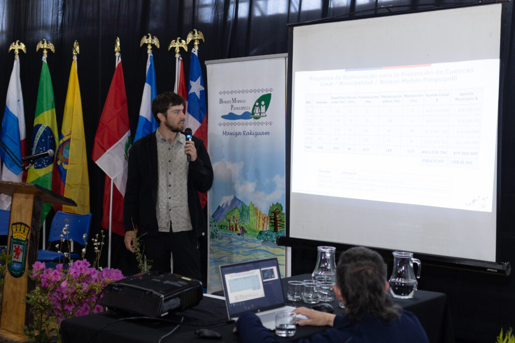 La jornada comenzó con experiencias locales del Bosque Modelo Panguipulli, donde destacó el trabajo del Plan de Educación Ambiental Biocultural y la presentación de la Escuela Claudio Arrau León.