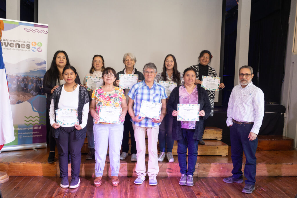 Esta mañana se realizó la certificación de los talleres de oficio en la Casona Cultural de Panguipulli, instancia que reunió a mujeres de sectores rurales y urbanos que participaron activamente en este proceso formativo, impulsado por el Departamento de la Mujer y Equidad de Género, dependiente de la Dirección de Desarrollo Comunitario (DIDECO).