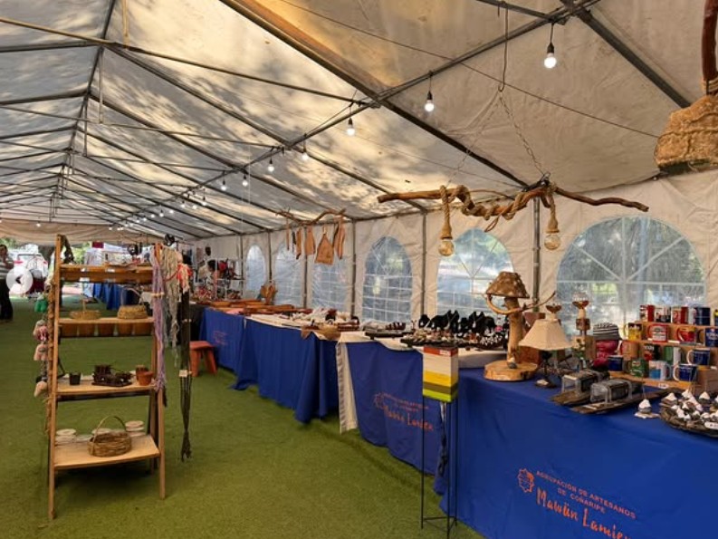 En esta instancia, el municipio otorgó permisos a la Agrupación de Mujeres Artesanas Hilando Raíces, la Agrupación Cultural Kume Helen y la Agrupación de Artesanos Mawün Lamien, quienes además trabajan de manera colaborativa en un espacio que ya presenta mejoras significativas. Como parte del compromiso municipal, se facilitó una carpa de eventos, avanzando en la creación de un lugar con mejores condiciones para el comercio.