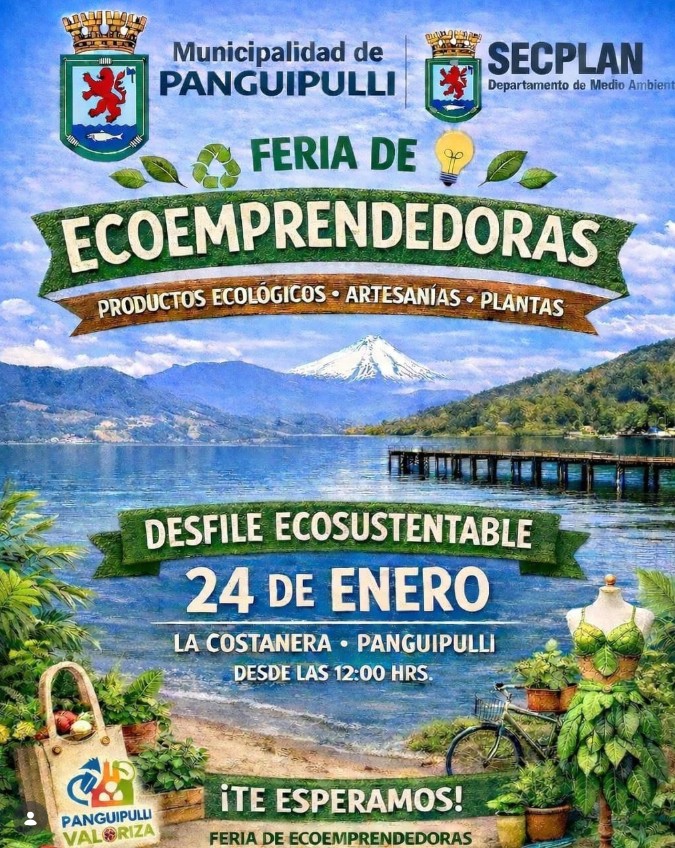 La Municipalidad de Panguipulli invita a la comunidad y a quienes visitan la comuna a participar de la Feria de Ecoemprendedoras 2026, una instancia que promueve el cuidado del medio ambiente, el consumo responsable y el fortalecimiento de iniciativas locales con enfoque sustentable.