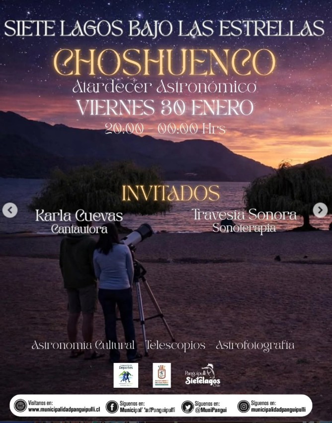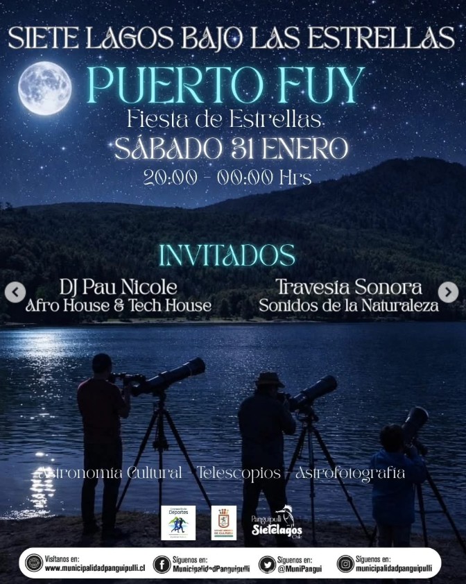 El Departamento de Cultura de la Municipalidad de Panguipulli invita a toda nuestra comunidad, vecinos, vecinas y turistas a sumergirse en una cartelera de actividades única, diseñada para celebrar el arte, la ciencia y nuestra identidad en cada rincón de este paraíso como lo es el Destino Sietelagos.