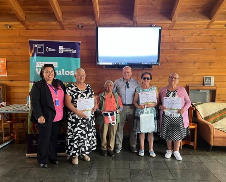 En la jornada participaron el alcalde de Panguipulli, Rodrigo Valdivia Orias, junto a la coordinadora de SENAMA, Yecxabeth Lange Guarda, la encargada comunal del Programa Vínculos, Johanna Gómez Hernández, además de las profesionales del programa.