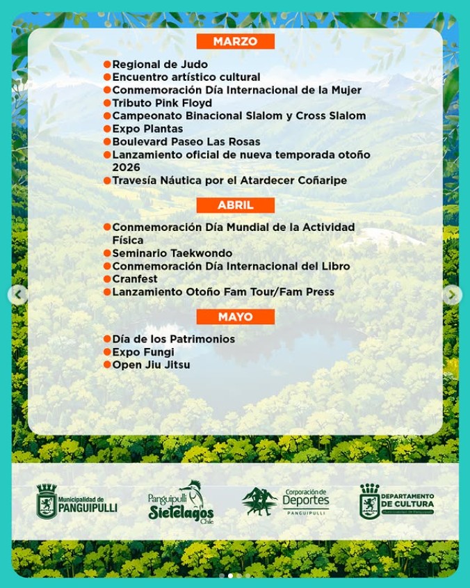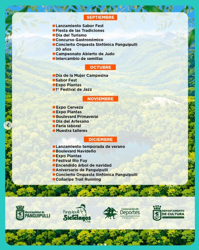 Además, la programación incluye iniciativas turísticas que invitan a descubrir la riqueza natural y cultural de la comuna en cada estación del año, potenciando el desarrollo local y el emprendimiento.