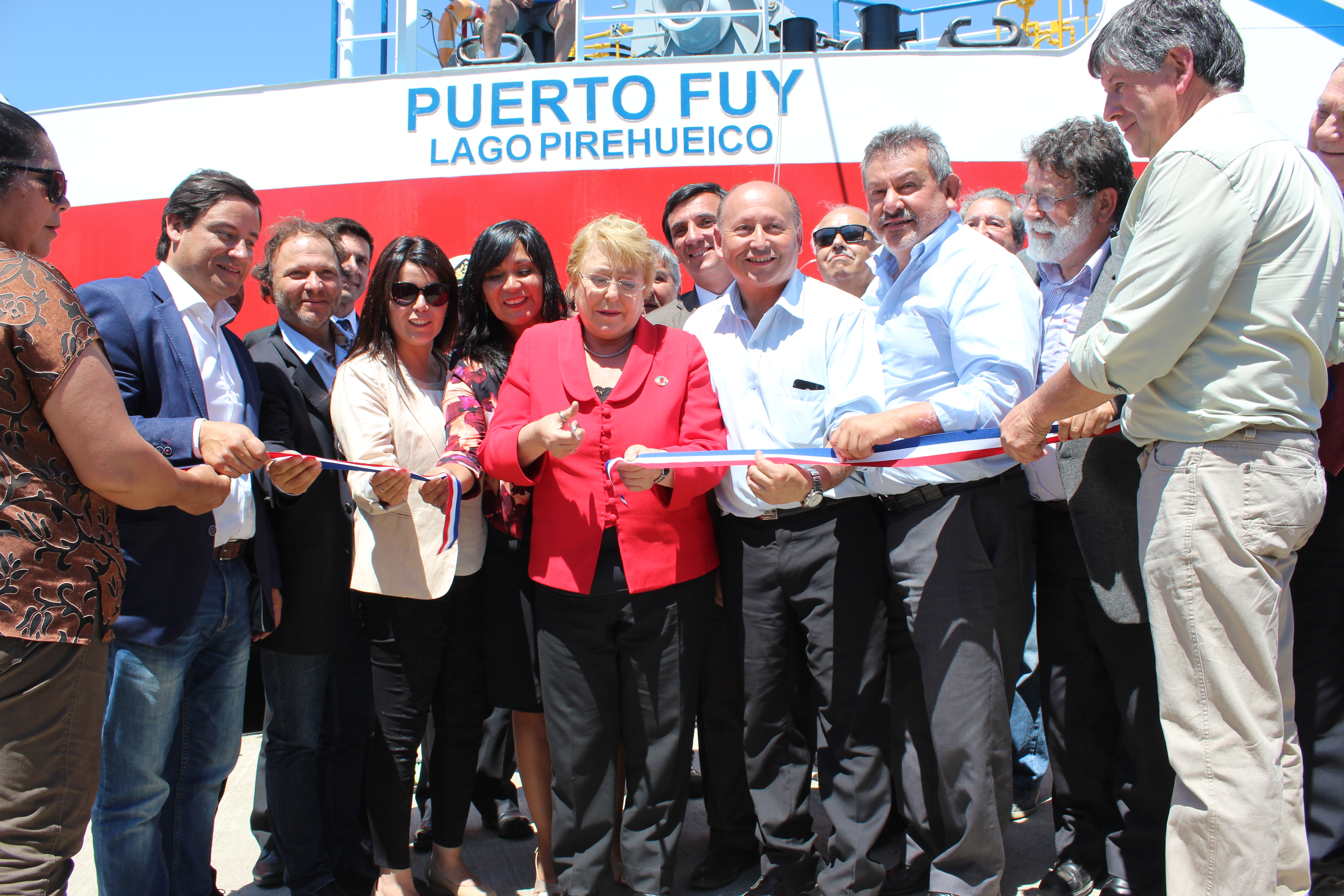 En horas de esta mañana, la Presidenta Michelle Bachelet inició un recorrido de inauguración de obras claves e importantes en las localidades de Melefquén y Puerto Fuy. En la primera localidad la jefa de gobierno inauguró el proyecto de saneamiento sanitario y más tarde se trasladó a Puerto Fuy para presentar a la comunidad la barcaza barcaza homónima y la Ruta CH-203, conexión Punahue a Puerto Fuy