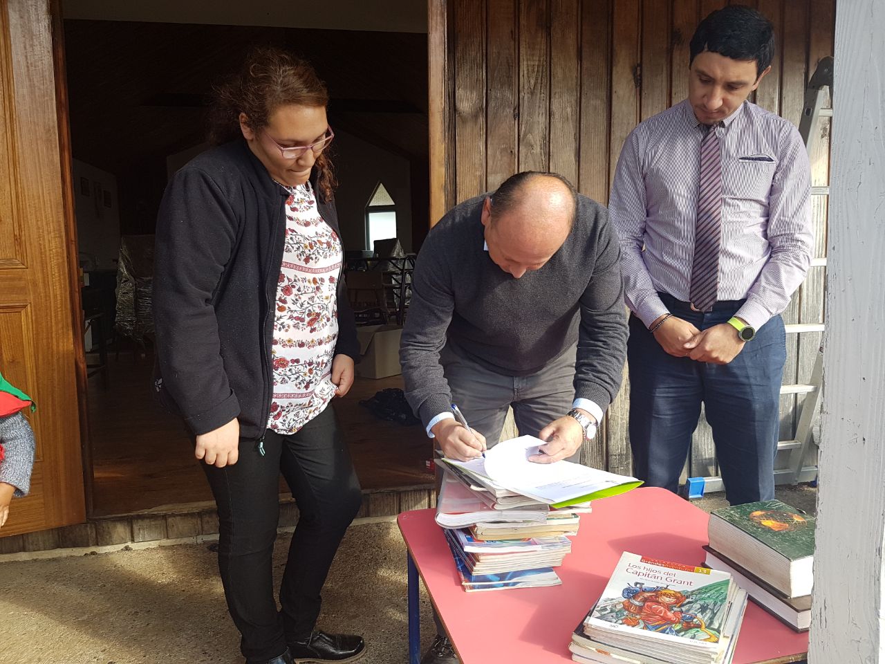 Tal como lo había comprometido durante la visita al lugar durante la semana anterior, la Corporación Municipal encabezada por Rodrigo Valdivia hizo entrega de mobiliario, útiles escolares y tres computadores que serán habilitados dentro de los próximos días por otro lado está el compromiso de entregar prontamente el diseño de la nueva escuela de Trelehueno la cual va a ser entregada a la comunidad educativa y al intendente Cesar Asenjo, adicionalmente la Corporación Municipal comprometió apoyar técnicamente para solventar los problemas sanitarios y eléctricos del nuevo comedor.