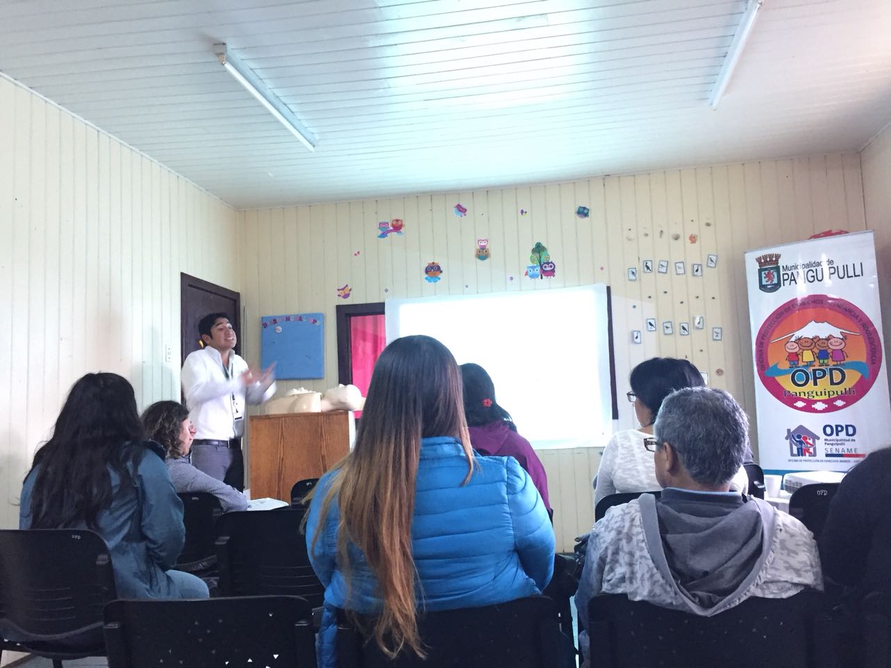 La actividad fue desarrollada gracias a la necesidad del equipo OPD por conocer el protocolo de primeros auxilios con solicitación de activación con equipo de prevención de la Municipalidad de Panguipulli. Participaron 25 personas provenientes de Omil, OPD, Departamento de Turismo y Departamento Social, en horario de mañana. Posteriormente el taller fue certificado.